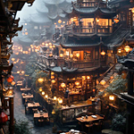 Diese riesige Taverne und Restaurant, die größte in Tian’an, umfasst mehrere Stockwerke und wird von lokalen Händlern, Arbeiter und Besuchern gleichermaßen geschätzt. Die Gäste können hier aus einfachen Gerichten, bis hin zu ausgefallenen und teuren Köstlichkeiten, wählen was das Herz begehrt oder der Geldbeutel zulässt. Aber nicht nur die Speisekarte deckt von lokalen bis gehobenen Geschmäcker beinahe alles ab, sondern auch die Getränkekarte lässt nicht viele Wünsche offen.
